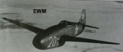 SU-9/11 El Su-9 era un caza convencional con dos motores RD-10 basados en el Junkers Juno 004b, suspendidos bajo el ala de implantación baja.Pero solo llego a ser producido como prototipo en 1946 después de que Yakovlev, el principal diseñador soviético de la época, dijese a Stalin que se trababa de una simple copia del Messerschmitt 262, y que era anticuado y peligroso El primero en volar El diseño de Yakovlev se basaba en su excelente caza Yak-3.Los planos básicos se completaron en solo tres días, tres meses después en mayo de 194, estaban listos los primeros planos detallados del Yak-15. El motor un RD-10 de 900 kg de empuje, se situaba bajo la sección delantera del fuselaje, con el difusor de admisión en la proa y la tobera de exhaustacion cerca del borde de fuga alar. El Yak-15 tenia un aforo de combustible bien escaso, pero era extremadamente ágil y gozaba de dos devastadores cañones NS-23 de 23 mm El prototipo se completo a finales de 1945, pero las pistas inundadas del aeródromo de pruebas de Chkalovskaya, cerca de Moscú y una peculiar forma de juego limpio a la unión soviética retrasaron su primer vuelo hasta que el prototipo rival MIG-9 estuvo listo. El 24 de abril de 1946 se lanzo al aire una moneda que proporciono al recién llegado el privilegio de realizar el primer vuelo a reacción soviético seguido minutos después por el Yak-15. Entretanto, Lovochkin había seguido su propio camino.Su nuevo La-150 no sacaba ningún provecho de la nueva aerodinámica y ya estaba claramente fuera de juego al realizar su primer vuelo en setiembre de 1946.Intentos posteriores de mejorar el diseño resultaron infructuosos pero el 24 de junio de 1947 Lavochkin hizo volar por vez primera su La-160, el primer caza de ala en flecha del mundo. El ala en flecha era en esos días la mejor forma posible de extraer todo el potencial de una planta motriz a reacción.Como en el caso de otros diseñadores soviéticos, la tenacidad de Lovochkin le llevo a encontrar la misma solución que los aerodinamicista alemanes. El ala del La-160 tenia una flecha de 35 grados en el borde de ataque incluso con el modesto empuje de 1000 kg. de su motor RD-10F, el avión alcanzo los 1050 km/h en vuelo horizontal.